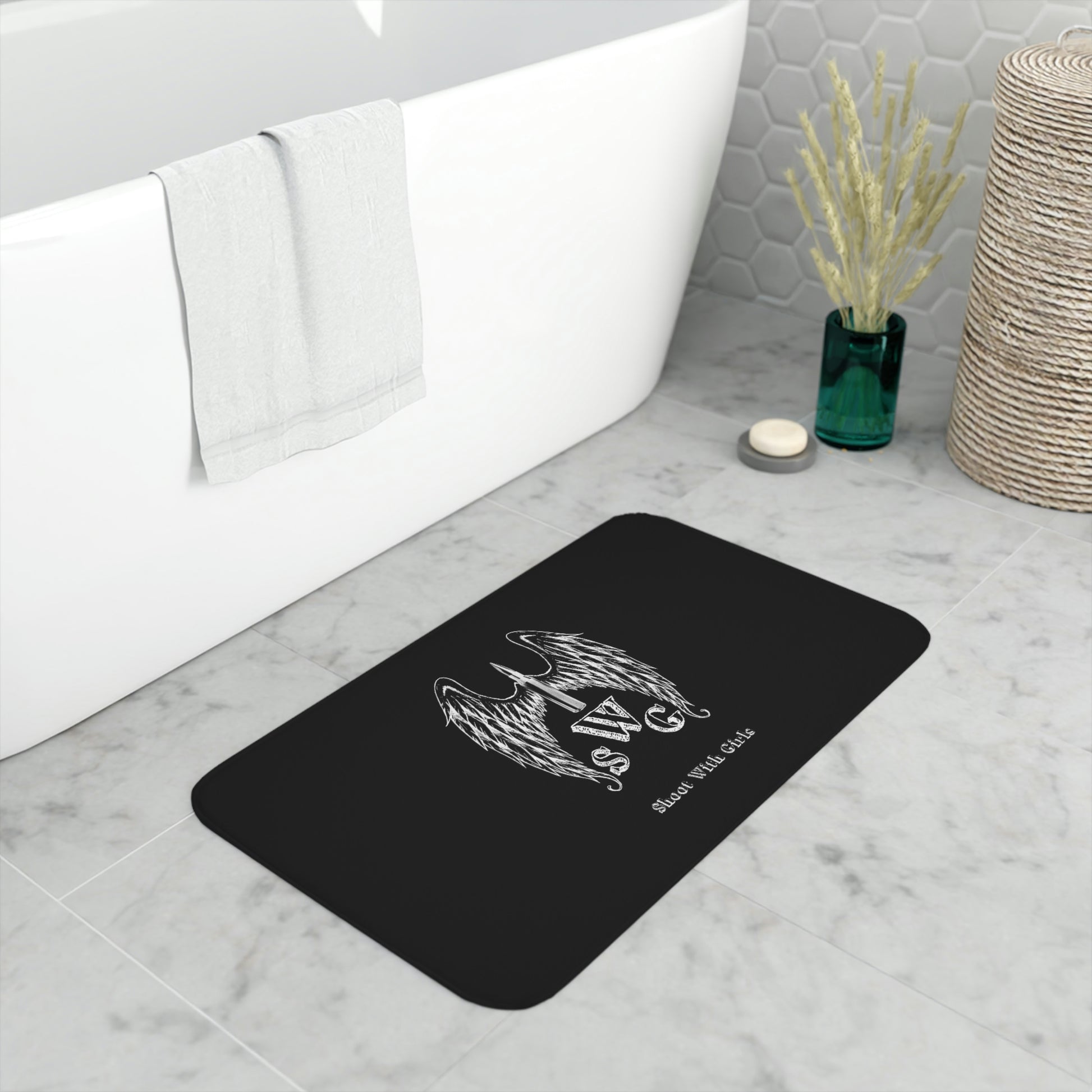 Add a splash of personality to any bathroom with this personalized bath mat. Featuring a cozy memory foam layer and a soft microfiber surface for ultimate comfort, this mat is a safe addition to any home thanks to its anti-skid bottom. Add your own designs and create a unique product for any home decor aficionado. Can also be used as a soft table